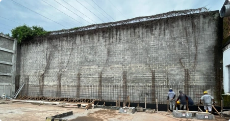Fomos chamados para atender a um chamado de um muro de 12 metros de altura por 42 metros de comprimento que estava prestes a cair.